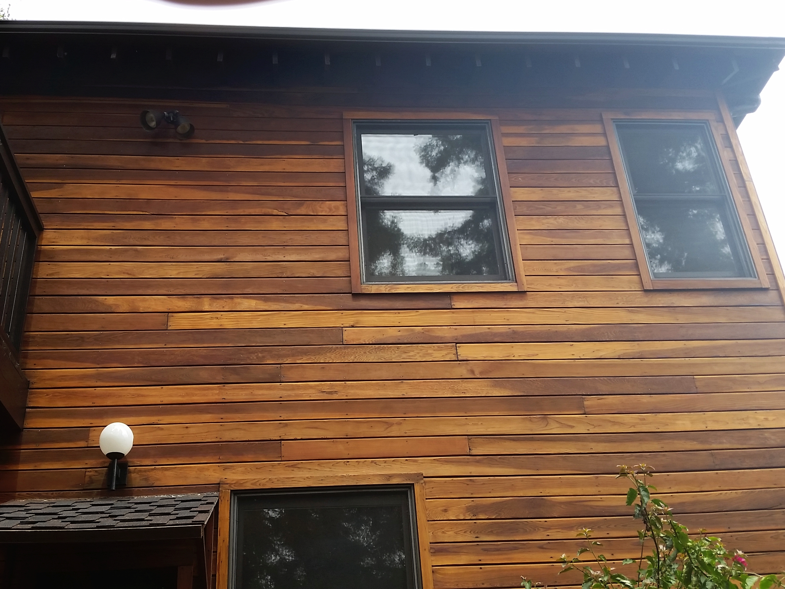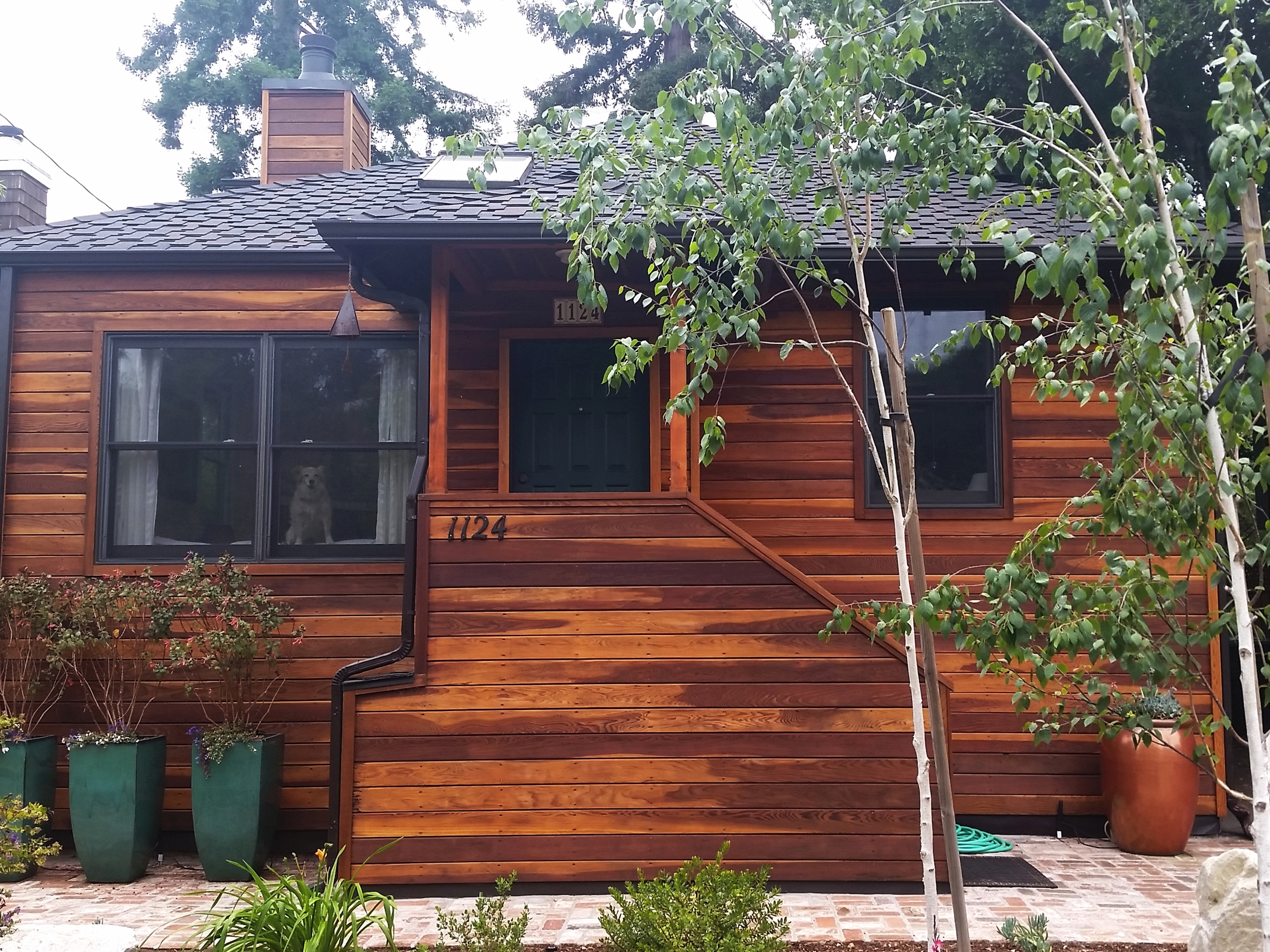 This house had a heavily over-applied Sikkens stain present. Cal Preserving’s crew spent over 3 weeks removing it by thorough hand-sanding and then preserving it with a semi-transparent stain.