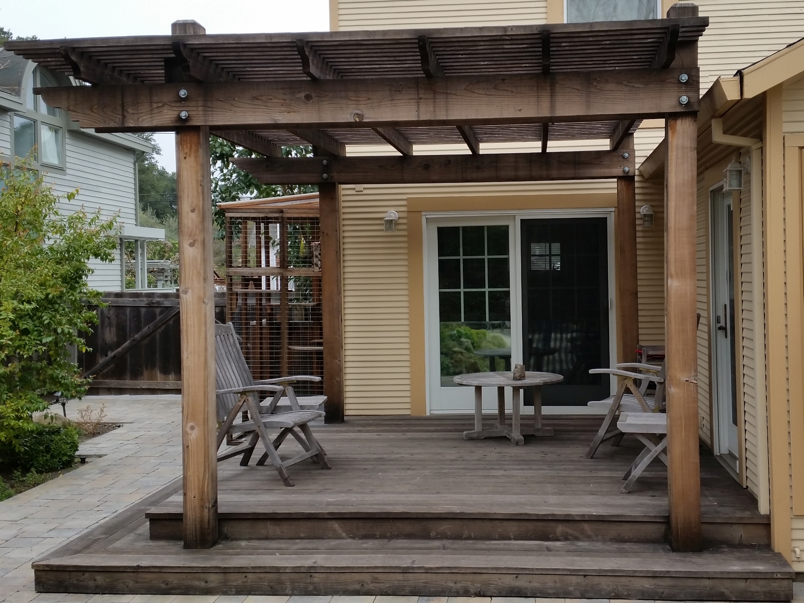 This is the primary home of one of customers in Palo Alto. We have cleaned and preserved the redwood deck, trellis, fence and teak furniture. They also have a second home in Woodside that has all redwood siding as well as redwood and IPE decks and railings. Cal Preserving maintains the exterior wood at both properties.